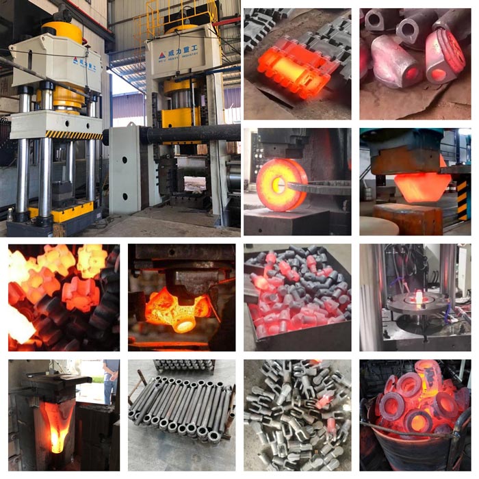 鍛造液壓機鍛造的基本工序為:下料工序——加熱工序——鐓粗工序——閉式復合擠壓工序——熱處理等。