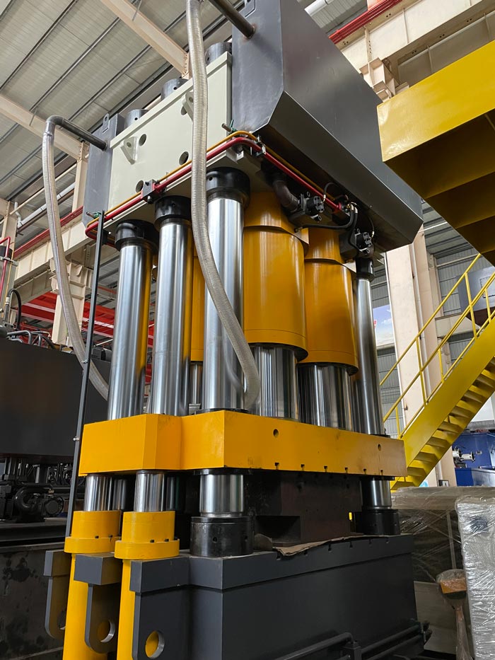 4、穩定耐用:IGBT3000噸液壓機(冷擠壓紫銅散熱器生產設備)機架采用三梁六柱式結構設計,整機穩定,工作臺面寬大而平整,由耐磨、耐壓的材料制成,堅固而穩定,以確保在高壓力下的穩定性和耐用性。適用于落料、成型、擠壓等多種工藝用途。